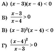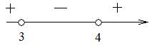 А) Неравенство имеет две точки 3 и 4, делящие числовую ось со следующим распределением знаков неравенства: