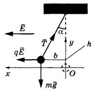 3. Выберем траекторию перехода в виде двух последовательных шагов: сначала из исходного положения вверх на расстояние h, затем по горизонтали на расстояние b в конечное положение. На этой траектории сумма работ силы тяжести и силы со стороны электрического поля