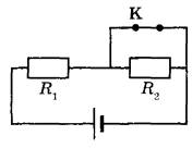 где E — ЭДС источника. После размыкания ключа через резистор R2 начнёт протекать ток. Значит, ток в цепи после размыкания ключа К