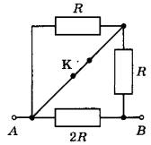 Участок AB представляет собой параллельное соединение сопротивления 2R с сопротивлением R (при замкнутом ключе К), соединенных последовательно. Тогда общее сопротивление цепи AB до размыкания ключа, равно: