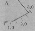 2. Амперметр показывает 3 минус 2 деления, то есть, значение