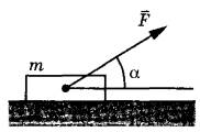 Задание 28. Брусок массой m = 2 кг движется поступательно по горизонтальной плоскости под действием постоянной силы величиной F = 25 Н, направленной под углом α = 30° к горизонту (см. рисунок). Определите коэффициент трения между бруском и плоскостью, если модуль силы трения, действующей на брусок, Fтр =1,2 Н.