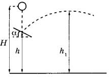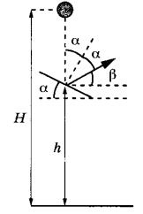 Задание 29. Шарик падает с высоты Н = 2 м над поверхностью Земли из состояния покоя. На высоте h = 1м он абсолютно упруго ударяется о доску, расположенную под углом к горизонту (см. рисунок). После этого удара шарик поднялся на максимальную высоту h1 = 1,25 м от поверхности Земли. Какой угол α составляет доска с горизонтом? Сопротивлением воздуха пренебречь.