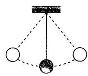 Задание 4. В момент времени t0 груз нитяного маятника, имеющего период колебаний T = 1,2 с, проходит через положение равновесия (см. рисунок). За какой промежуток времени с момента t0 он проходит путь, равный трём амплитудам колебаний?