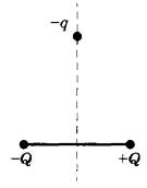 Задание 13. Отрицательный точечный заряд -q находится в поле двух неподвижных точечных зарядов: отрицательного -Q и положительного +Q (см. рисунок). Куда направлено относительно рисунка (вправо, влево, вверх, вниз, к наблюдателю, от наблюдателя) ускорение заряда -q в этот момент времени, если на него действуют только заряды +Q и -Q? Ответ запишите словом (словами).