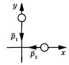 3 | Два тела движутся по взаимно перпендикулярным пересекающимся прямым, как показано на рисунке. Модуль импульса первого тела р1 = 16 кг∙м/с, второго тела р2 = 12 кг∙м/с. Каков модуль импульса системы этих тел после их абсолютно неупругого удара?