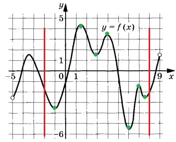 Известно, что производная f’(x)=0 в точках экстремума функции f(x). Определим число точек экстремума на отрезке [-2; 8], получим 7 точек: