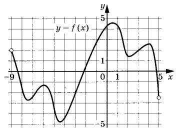 Задание 7. На рисунке изображён график функции y = f(x), определённой на интервале (-9; 5). Найдите количество точек, в которых производная функции f(x) равна 0.
