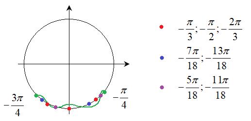 единичной окружности выберем все корни, принадлежащие отрезку