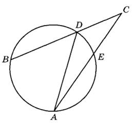6 | Градусная мера дуги АВ окружности, не содержащей точку D, равна 106°. Градусная мера дуги DE окружности, не содержащей точку А, равна 48°. Найдите угол АСВ. Ответ дайте в градусах.