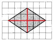Диагонали ромба равны 4 и 6 клеток соответственно. Значит, его площадь, равна: