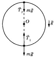2. В нижней и в верхней точках траектории на шарик действуют сила тяжести mg, силы со стороны стержня T1 и Т2 соответственно (см. рисунок).