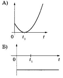 Задание 7. На рисунке показан график зависимости координаты x тела, движущегося вдоль оси Ох, от времени t (парабола). Графики А и Б представляют собой зависимости физических величин, характеризующих движение этого тела, от времени t.