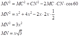 Рассмотрим треугольник CMN. По теореме косинусов длина отрезка MN, равна: