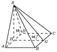 Для нахождения второй стороны основания рассмотрим прямоугольный треугольник SHG, в котором угол SGH=60° по условию задачи. Следовательно, угол HSG будет равен 30° (так как сумма углов в треугольнике всегда 180°). Аналогично находим длину HG: