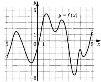 6 | На рисунке изображён график функции у = f(x), определённой на интервале (-5; 9). Найдите количество решений уравнения f’(x) = 0 на отрезке [-2; 8].