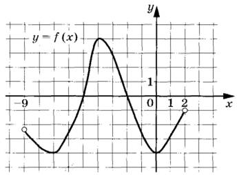 6 | На рисунке изображён график функции y = f(x), определённой на интервале (-9; 2). Определите количество целых точек, в которых производная функции отрицательна.