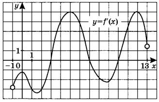 6 | На рисунке изображён график у = f'(x) — производной функции f(x), определённой на интервале (-1; 13). Найдите количество точек, в которых касательная к графику функции f(x) параллельна прямой y = x + 18 или совпадает с ней.