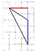 где h = 3 – высота треугольника (красная линия); a = 4 – основание, к которому проведена высота (жирная синяя линия):