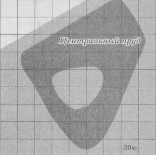 Задание 5. На фрагменте географической карты схематично изображены очертания Центрального пруда города Одинцово с островом (площадь одной клетки равна 400 м2). Оцените приближённо площадь Центрального пруда, включая остров. Ответ дайте в квадратных метрах.