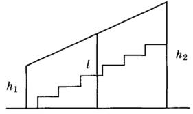 10 | Перила лестницы дачного дома для надёжности укреплены посередине вертикальным столбом длиной 2,6 м. Найдите наименьшую высоту h1 перил, если наибольшая высота h2 равна 3,1 м. Ответ дайте в метрах.