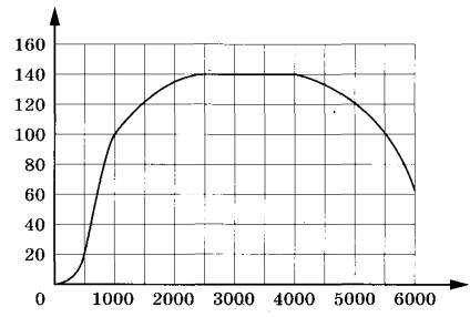 4 | На графике показана зависимость крутящего момента автомобильного двигателя от числа оборотов в минуту. На горизонтальной оси отмечено число оборотов в минуту, на вертикальной оси — крутящий момент в Н∙м.