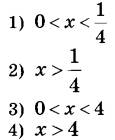17 | Каждому из четырёх неравенств в левом столбце соответствует одно из решений в правом столбце. Установите соответствие между неравенствами и их решениями.