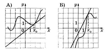 14 | На рисунках изображены графики функций и касательные, проведённые к ним в точках с абсциссой х0. Установите соответствие между графиками функций и значениями производной этих функций в точке х0. ГРАФИКИ