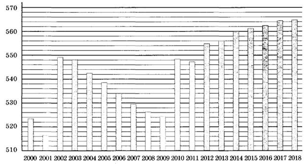 4 | На диаграмме приведены данные о численности населения в Оренбурге на конец каждого года с 2000 года по 2018 год (в тыс. чел.).