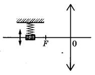 Задание 29. Груз на пружине совершает гармонические колебания перпендикулярно главной оптической оси собирающей линзы с оптической силой 5 дптр (см. рисунок). С помощью этой линзы получено чёткое изображение груза на экране, находящемся на расстоянии 0,5 м от линзы. Максимальная скорость груза равна 4 м/с. Определите максимальную скорость изображения груза. Груз считать материальной точкой.