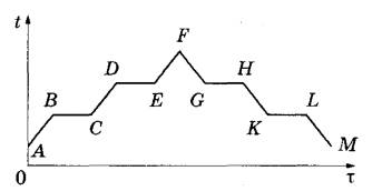 Задание 13. В цилиндре под поршнем находится твёрдое вещество. Цилиндр поместили в горячую печь, а затем выставили на холод. На рисунке схематично показан график изменения температуры t вещества с течением времени τ. Установите соответствие между участками графика и процессами, отображаемыми этими участками.