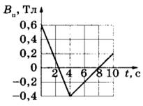 Задание 29. Квадратная проволочная рамка со стороной l = 10 см находится в однородном магнитном поле с индукцией В. На рисунке изображена зависимость проекции вектора В на перпендикуляр к плоскости рамки от времени. За время t = 10 с в рамке выделилось количество теплоты, равное 0,16 мДж. Определите сопротивление рамки R.
