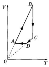 Из приведённого ниже списка выберите все верные утверждения, характеризующие отражённые на графике процессы. 1) Давление газа в процессе CD постоянно, при этом внешние силы совершают над газом положительную работу. 2) В процессе DA давление газа изохорно уменьшается. 3) В процессе АВ газ отдаёт в окружающую среду положительное количество теплоты. 4) В точке B объем газа достигает наибольшего значения, поэтому концентрация становится минимальной (при постоянной его массе). 5) В процессе ВС внутренняя энергия газа остается постоянной.