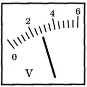 22 | Определите показания вольтметра (см. рисунок), если погрешность прямого измерения напряжения равна цене деления вольтметра. Вольтметр проградуирован в вольтах.