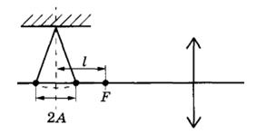 29 | Математический маятник совершает колебания в плоскости рисунка с амплитудой A = 1 см. Равновесное положение нити маятника находится на расстоянии