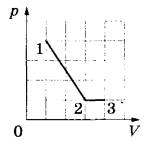 10 | На рисунке показано, как менялось давление газа в зависимости от его объёма при переходе из состояния 1 в состояние 2, а затем в состояние 3. Чему равно отношение работ газа A12/A23 при этих переходах?
