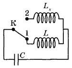 16 | В колебательном контуре (см. рисунок) индуктивность катушки L = 12 мГн. Какой должна быть индуктивность Lx второй катушки, чтобы при переводе ключа K из положения 1 в положение 2 период собственных электромагнитных колебаний в контуре уменьшился в √3 раза?
