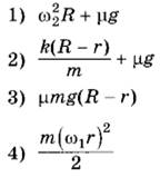 8 | Маленькая шайба массы m, способная перемещаться вдоль гладкого стержня, находится на поверхности горизонтального диска, равномерно вращающегося с угловой скоростью ω1, на расстоянии r от оси O, с которой шайба соединена лёгкой недеформированной пружинкой жёсткости k (см. рисунок). Коэффициент трения между шайбой и диском μ. Как только угловая скорость начинает медленно и плавно возрастать, шайба начинает смещаться. При угловой скорости ω2 расстояние до оси стало R, при этом диск стал вновь вращаться равномерно.