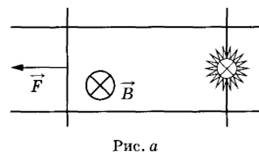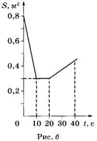 17 | По гладким параллельным горизонтальным проводящим рельсам, замкнутым на лампочку накаливания, перемещают лёгкий тонкий проводник, прикладывая к нему горизонтальную силу F. Контур находится в однородном магнитном поле с индукцией B (см. рис. а). При движении проводника площадь контура изменяется так, как указано на рис. б.