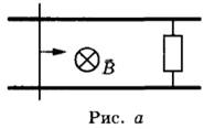 17 | По гладким параллельным проводящим рельсам, замкнутым на резистор, перемещают лёгкий тонкий проводник. Рельсы, резистор и проводник образуют контур, который находится в однородном магнитном поле, как показано на рис. а. При движении проводника площадь контура изменяется так, как указано на рис. б.