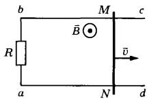 26 | По параллельным проводникам bc и ad, находящимся в магнитном поле с индукцией В = 0,4 Тл, скользит проводящий стержень MN, который находится в контакте с проводниками (см. рисунок). Расстояние между проводниками l = 20 см. Слева проводники замкнуты резистором с сопротивлением R = 2 Ом. Сопротивление стержня и проводников пренебрежимо мало. При движении стержня через резистор R протекает ток I = 40 мА. С какой скоростью движется проводник? Считать, что вектор B перпендикулярен плоскости рисунка.