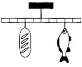 5 | Мальчик взвесил рыбу на самодельных весах из лёгкой удочки (см. рисунок). В качестве гири он использовал батон хлеба массой 0,6 кг. Определите массу рыбы.