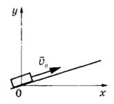 8 | После удара в момент t = 0 шайба начинает скользить вверх по гладкой наклонной плоскости с начальной скоростью v0, как показано на рисунке, и в момент t=t0 возвращается в исходное положение. Графики А и Б отображают изменение с течением времени физических величин, характеризующих движение шайбы.