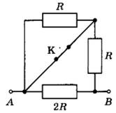 15 | На сколько увеличится сопротивление участка цепи АВ, изображённого на рисунке, если ключ К разомкнуть? Сопротивление R = 12 Ом.