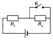 28 | Источник тока, два резистора и ключ включены в цепь, как показано на рисунке. При разомкнутом ключе на резисторе R1 выделяется мощность Р1 = 3 Вт, а на резисторе R2 — мощность Р2 = 6 Вт. Какая мощность будет выделяться на резисторе R1 после замыкания ключа К? Внутренним сопротивлением источника пренебречь.