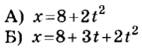 8 | Выражения А и Б определяют зависимость координат двух тел от времени. Установите соответствие между зависимостью координаты тела от времени и зависимостью проекции скорости от времени для этого же тела (все величины заданы в СИ).