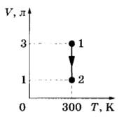 9 | На рисунке представлен график зависимости объёма идеального газа от его температуры в некотором процессе. В состоянии 1 давление газа было равно нормальному атмосферному давлению. Какое давление соответствует состоянию 2, если масса газа остаётся неизменной?