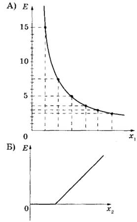 21 | На металлическую пластинку падает пучок монохроматического света. При этом наблюдается явление фотоэффекта. На графике А представлена зависимость энергии фотонов, падающих на катод, от физической величины x1, а на графике Б — зависимость максимальной кинетической энергии фотоэлектронов от физической величины x2. Какая из физических величин отложена на горизонтальной оси на графике А и какая — на графике Б?