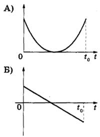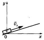 8 | После удара в момент t = 0 шайба начала скользить вверх по гладкой наклонной плоскости со скоростью v0, как показано на рисунке. В момент t0 шайба вернулась в исходное положение. Графики А и Б отображают изменение с течением времени физических величин, характеризующих движение шайбы.