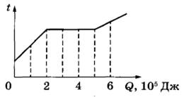 11 | На рисунке показан график изменения температуры вещества, находящегося в сосуде, по мере поглощения им количества теплоты. Масса вещества 4 кг. Первоначально вещество было в твёрдом состоянии. Какова удельная теплота плавления вещества?